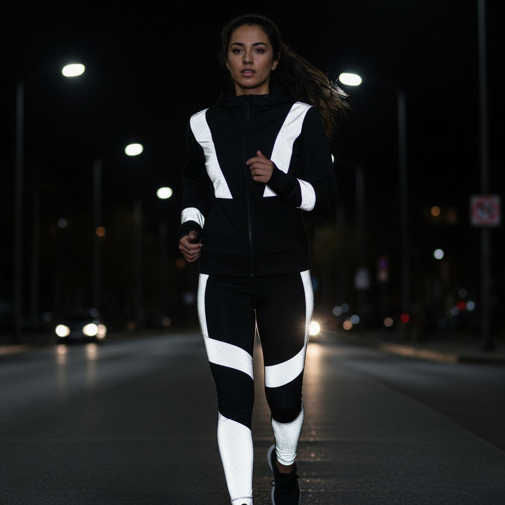 - Superficie: Vinil textil reflejante plata con granos metalizados reflectivos.